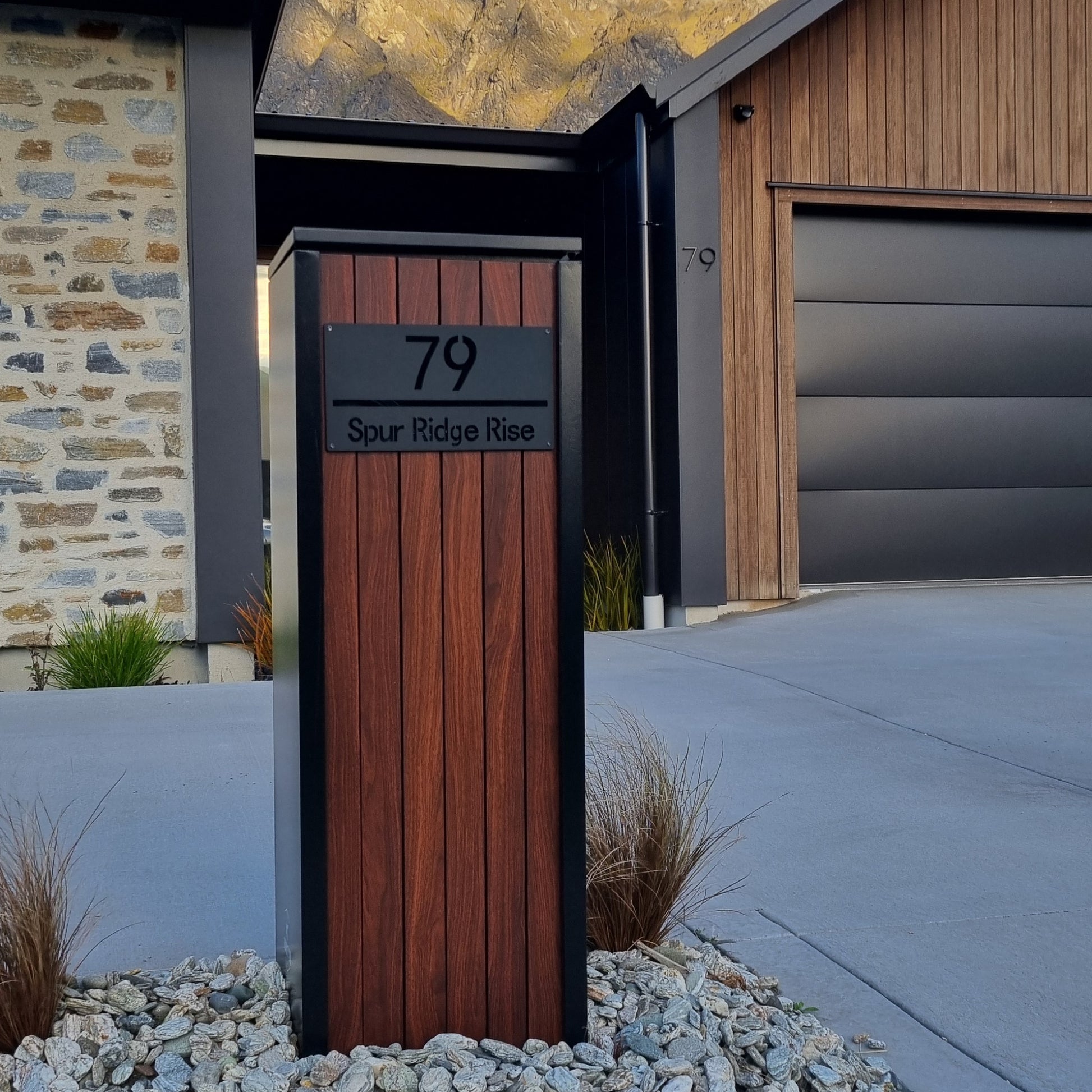 • Black mailbox with Kwila panels