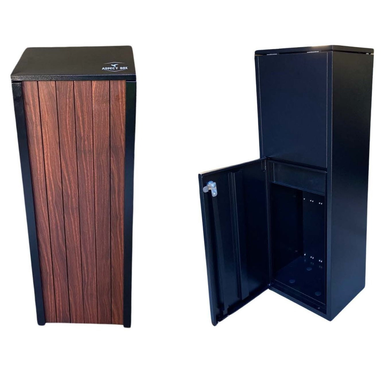 Parcels are deposited through the lift lid and drop into an enclosed internal compartment, helping keep deliveries protected and out of sight until retrieval via the rear locking door.
